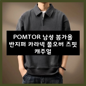 6. POMTOR 남성 봄가을 반지퍼 카라넥 풀오버 즈핏 캐주얼