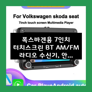 폭스바겐용 7인치 터치스크린 BT AM/FM 라디오 수신기, 안드로이드 오토, 카플레이, USB 충전, 핸즈프리 통화 지원 카 스테레오